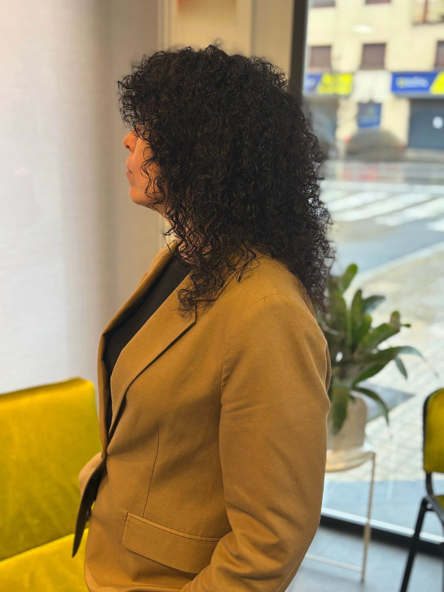 Rizos definidos, con movimiento y personalidad, un peinado que realza la belleza natural y transmite seguridad desde cualquier ángulo.